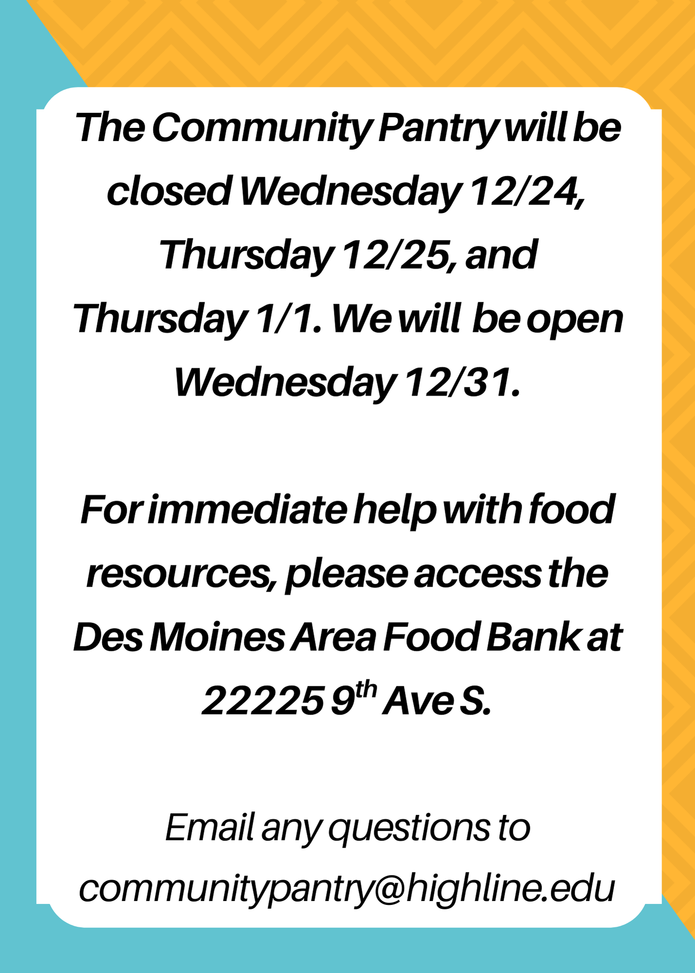 Anyone with a Highline ID Number can utilize the pantry which includes students, faculty, and staff.
